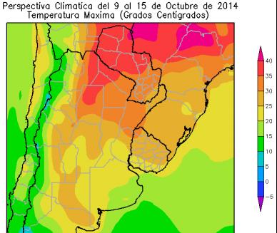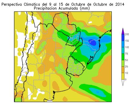 Perspectiva Agroclimática del 9 al 15 de octubre de 2014: Precipitaciones sobre el nordeste del área agrícola y fuerte oscilación térmica y fuerte oscilación térmica