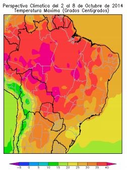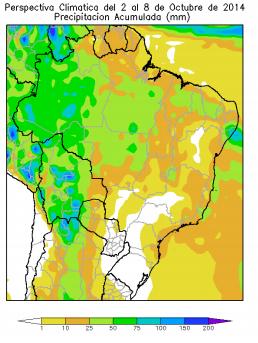 Perspectiva Agroclimática para el Brasil del 2 al 8 de octubre de 2014: Precipitaciones el extremo noroeste del área agrícola brasileña y marcada oscilación térmica