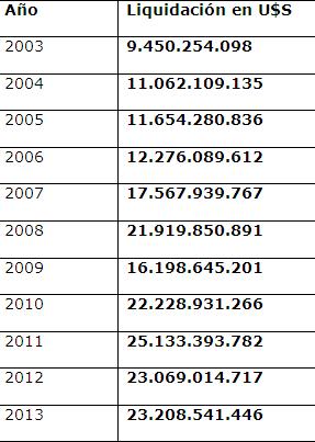 La liquidación de divisas de las empresas del sector en los últimos años fue: