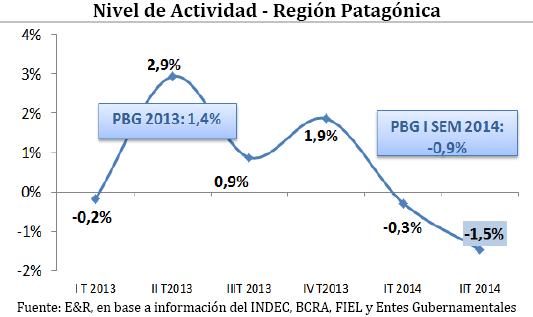Durante el segundo trimestre de 2014, el nivel de actividad de la Región Patagónica habría presentado un descenso del 1,5% con respecto a igual trimestre de 2013.