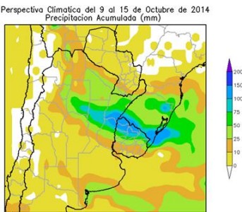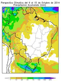 Perspectiva Agroclimática para Brasil del 9 al 15 de octubre de 2014: Precipitaciones sobre el sur del área agrícola brasileña y marcada oscilación térmica