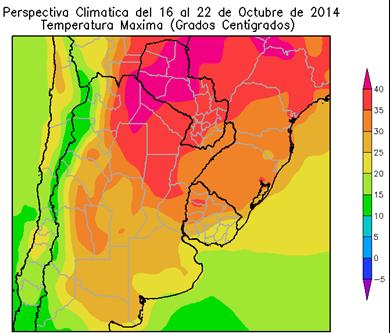 Al comienzo de la segunda etapa de la perspectiva, los vientos del sector norte se adueñaran de la mayor parte del área agrícola, provocando temperaturas máximas superiores a lo normal para la época: