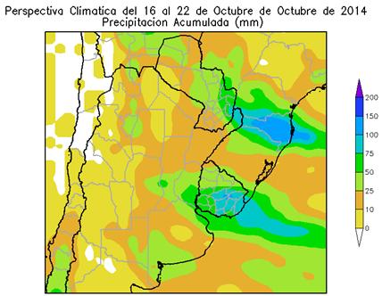 Perspectiva Agroclimática del 16 al 22 de octubre de 2014: Calor, seguido por precipitaciones sobre el centro y el este del área agrícola y un marcado descenso térmico