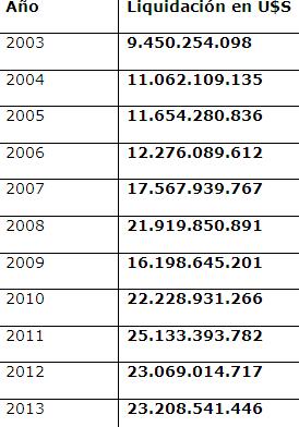 La liquidación de divisas de las empresas del sector en los últimos años fue: