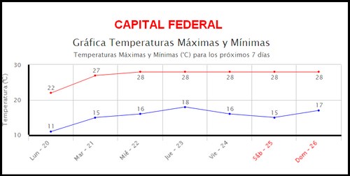 Según informa el sitio Meteorología de Buenos Aires (METBA), el lunes 20-10 inició fresco a frío debido a la trayectoria marítima de los vientos, pero esto rápidamente se modificó en la medida que los vientos en el centro del país rotaron hacia el norte y con eso se empezó a sentir un marcado aumento en las temperaturas que fueron, como es usual, más altas al oeste del país, aunque de todas formas en el área metropolitana se vivió una semana prácticamente de verano.