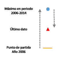 Mediano plazo (últimos ocho años): en este análisis, se verá cuánto habían aumentado los precios desde un punto de partida (año 2006, fecha a partir de la cual la soja comenzó a aumentar sustancialmente), y cuánto han caído con respecto a esos valores máximos. El esquema gráfico nos permite ver ambos movimientos.