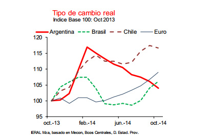 La política cambiaria está lejos de compensar ese movimiento, y en los últimos tres meses, mientras el real y el peso chileno se depreciaron en forma significativa, el peso, por el contrario, volvió a apreciarse.