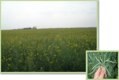 Colza en estado reproductivo: El estado general es de muy bueno a excelente. No se observaron plagas ni enfermedades.