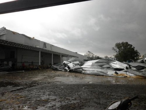 Asimismo se derrumbó por completo la sede del Mercado Central de Alberto Samid sobre ruta 5, hubo voladura de techos, árboles caídos en todo el centro y la ciudad permanece sin luz ni agua. También provocó roturas en la planta de Acerbrag sobre ruta 5, Maltería Pampa y la cadena de distribución mayorista Maxiconsumo sufrió la voladura de sus techos.