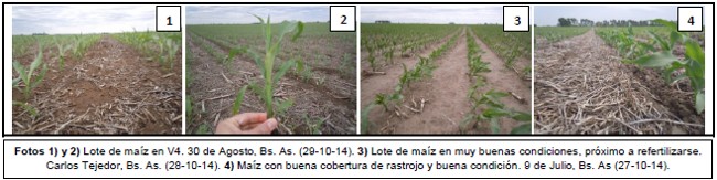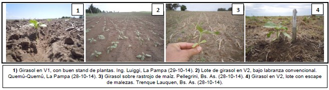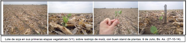 Hacia el Norte de La Pampa-Oeste de Buenos Aires, aún no se ha finalizado con las labores de siembra, a causa de un retraso que se viene dando en la zona de Catriló, Quemú-Quemú, Cnia. Barón, Gral. Pico y hacia el oeste, con ataques de oruga cortadora; se espera que en los próximos días se finalicen las tareas de implantación. Los cuadros más adelantados presentan dos pares de hojas completamente desarrolladas.