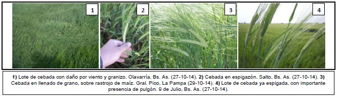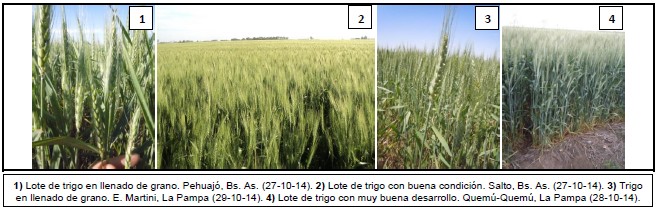 De este modo, el Norte de La Pampa-Oeste de Buenos Aires, zona que concentra el 8,2 % de las 920.000 sembradas a nivel nacional, hoy transita llenado de grano en muy buenas condiciones. En esta zona el hectáreas cultivo ha sido afectado por enfermedades como escaldadura de la hoja y mancha en red, las cuales fueron controladas oportunamente. Del mismo modo, se registran ataques de pulgones y algunos eventos de oruga desgranadora. El objetivo de los productores zonales es obtener un cereal de calidad, por lo cual todavía están a la espera de un nuevo pulso hídrico y temperaturas moderadas, que permitan tener un buen llenado de grano.
