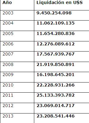 La liquidación de divisas de las empresas del sector en los últimos años fue:
