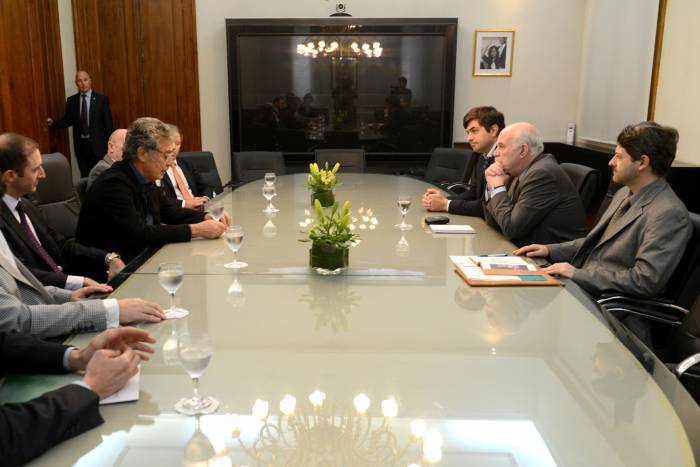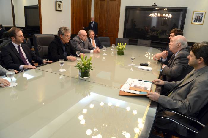El ministro Carlos Casamiquela, el secretario Gabriel Delgado y el director nacional de Biotecnología Martín Lema durante la reunión con Hugo Sigman y los representantes del CAB. Hugo Sigman, presidente de la CAB durante la reunión con el ministro Carlos Casamiquela.