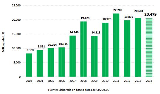 La liquidación de divisas del complejo agroexportador ascendió con fuerza en la semana comprendida entre el 24 y el 31 de Octubre alcanzando U$S 611 millones, es decir, 63% más que el monto liquidado en la semana previa. El suceso, tiene su explicación en el acuerdo efectuado por el sector con el gobierno nacional, donde el primero se comprometió a liquidar U$S 5.700 millones en lo que resta de 2014.