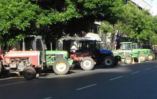 Los tractores avanzaban esta mañana por Chacabuco hacia la Plaza San Martín