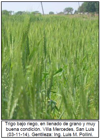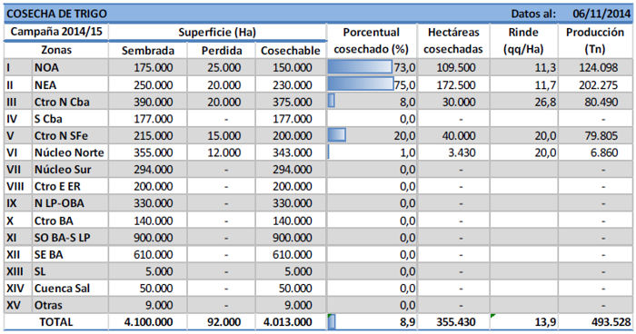 Actualmente la zona que presenta el mayor avance de siembra es el Núcleo Norte, en donde se ha implantado el 20 % del área apta. Si bien la proyección para esta campaña registra una caída del 20 % respecto de lo implantado durante la campaña 2013/14, algunos productores vuelven a elegir a este cereal debido a la posibilidad que les ofrece esta gramínea de rotar lotes a un bajo costo. Los cuadros implantados en fechas tempranas se encuentran en etapas vegetativas diferenciando las primeras hojas.