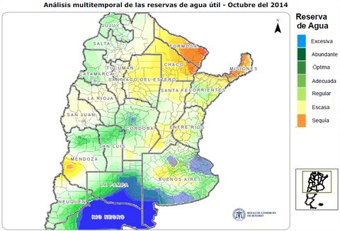 Se proyecta la superficie sembrada con soja 2014/15 en 20,7 millones de hectáreas, 2,4% más que el año pasado pero cifra que resulta similar si se toman las expectativas de la campaña pasada durante el mes de noviembre. Se ha sembrado el 15% del total, aumentando la actividad de siembra luego de los importantes montos de lluvias de fin de octubre y principios de noviembre. Estás últimas lluvias también han llegado en estos días al norte del país, especialmente a la provincia de Chaco, siendo fundamentales para las recargas de los perfiles y posibilitar la futura siembra de la oleaginosa.