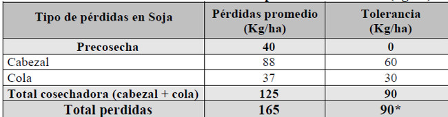 *Este es el valor de tolerancia de pérdidas totales independientemente del rinde del cultivo (fuente PRECOP II)