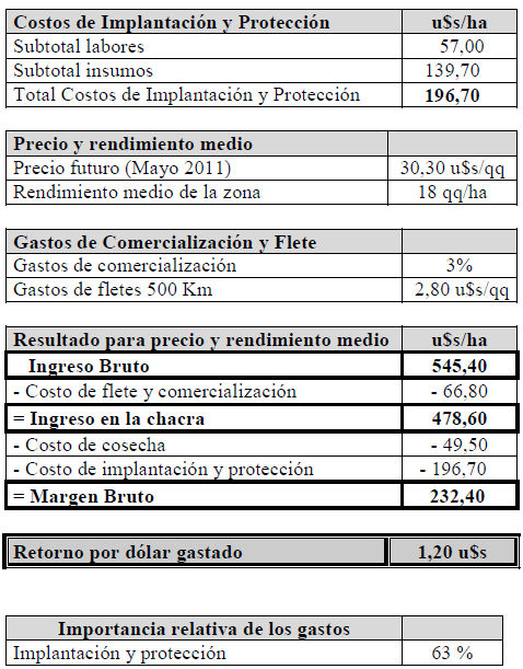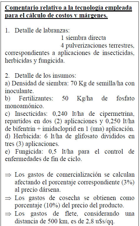 COSTOS Y MARGENES DE PRODUCCION: SOJA en Siembra Directa