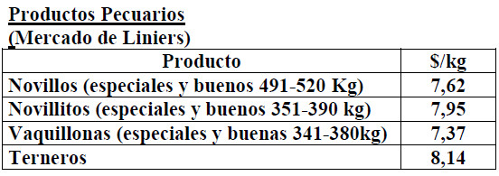 PRECIOS (correspondientes al promedio de la primera quincena del mes de Octubre del año 2010)