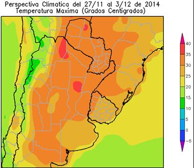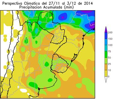 Perspectiva Agroclimática del 27 de Noviembre al 3 de Diciembre de 2014: Marcada oscilación térmica y precipitaciones sobre el oeste del área agrícola