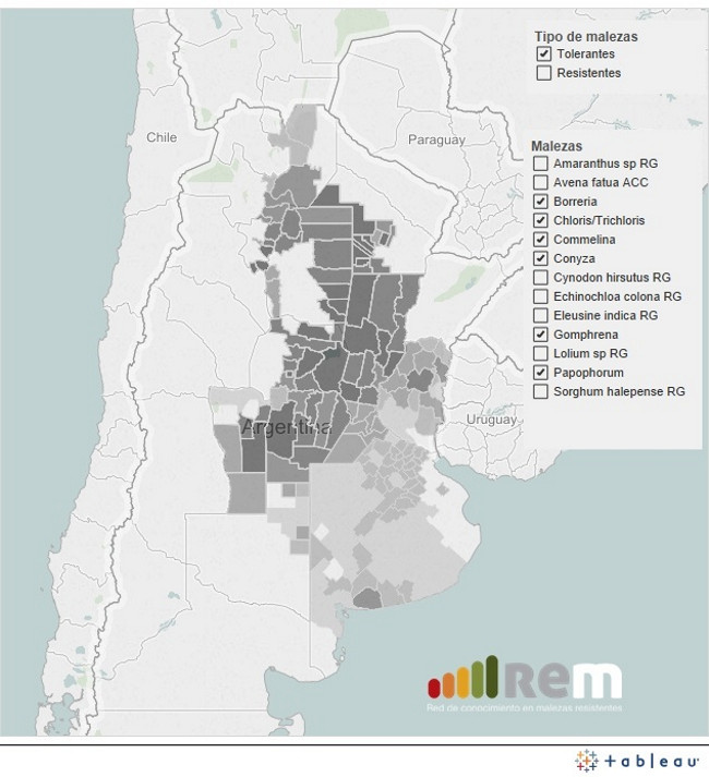 Por otra parte, la lista de malezas resistentes está bien definida y se van incorporando nuevas cuando se detecta que algunos individuos sobreviven a algún herbicida, comprobándose posteriormente con estudios científicos. En tanto, la lista de tolerantes no tiene límites tan precisos porque son especies que comúnmente se encontraban en bordes de lotes o en zonas no productivas, y que con los años han ido colonizando lotes y afectando mayor superficie agrícola.