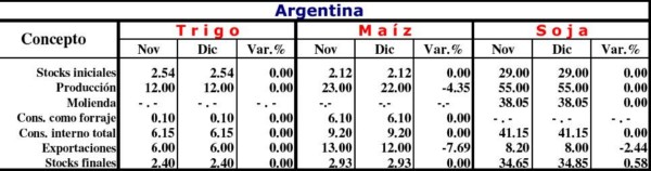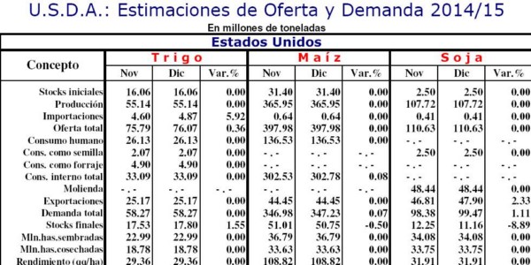 Por último, el USDA mantiene la producción para trigo de EEUU en 55,14 millones de toneladas. En cuanto a las exportaciones se mantienen en 25,17 millones de toneladas y la demanda también es igual totalizando 58,27 millones de toneladas. Por otra parte, aumenta los stocks finales a 17,80 millones de toneladas (1.55%+) y los rindes se mantienen en 29,36 qq7Ha.