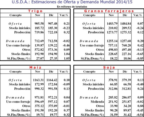Por el trigo de Argentina se mantiene la producción en 12 millones de toneladas, para Australia en 24 millones y aumenta significativamente para Canadá en 29,30 millones de toneladas (6.55%+) para el ciclo 14/15.