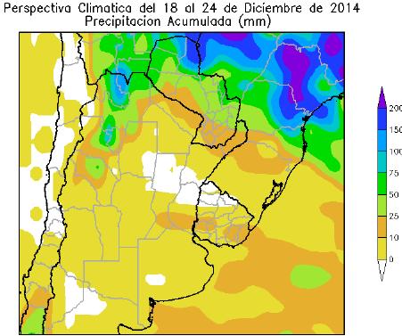 Perspectiva Agroclimática del 18 al 24 de Diciembre de 2014: Precipitaciones sobre el norte del área agrícola y temperaturas moderadamente cálidas