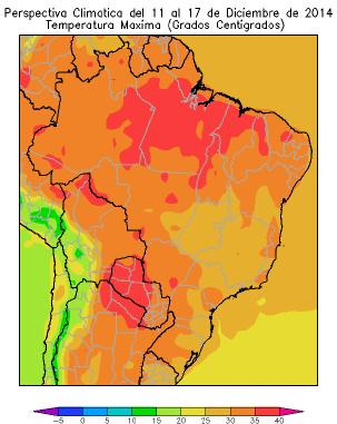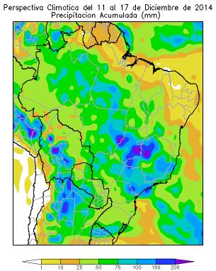 Perspectiva Agroclimática para Brasil del 11 al 17 de Diciembre de 2014: Calor y Precipitaciones en la mayor parte del área agrícola Brasil