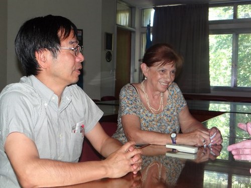 Kato fue recibido por la directora interina de la Experimental, Nora Mancuso quien llegó acompañada por quien asumirá como director de la Experimental Pergamino, a partir de Febrero de 2015, Omar Scheneiter.