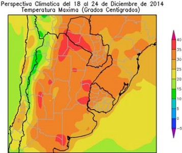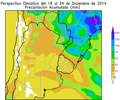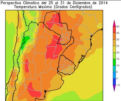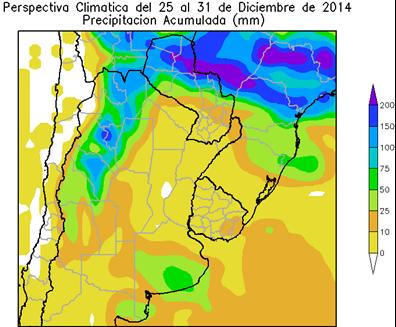 Perspectiva Agroclimática del 25 al 31 de Diciembre de 2014: Precipitaciones sobre el norte del área agrícola y calor