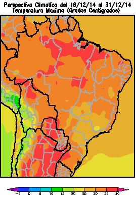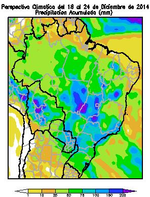 Perspectiva Agroclimática para Brasil del 18 al 24 de diciembre de 2014: Calor y precipitaciones en la mayor parte del área agrícola