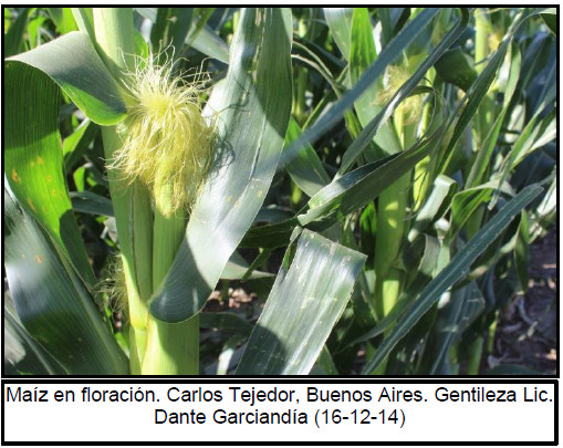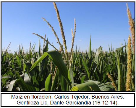 Para el Norte de La Pampa- Oeste de Buenos Aires las condiciones hídricas de los suelos son adecuadas, permitiendo así mantener un estado bueno de los cultivos. Si bien a comienzos de la campaña estos maíces registraron grandes problemas de plagas como oruga cogollera y cortadora, hoy se han recuperado y se los puede apreciar en óptimas condiciones transitando estadíos de floración.