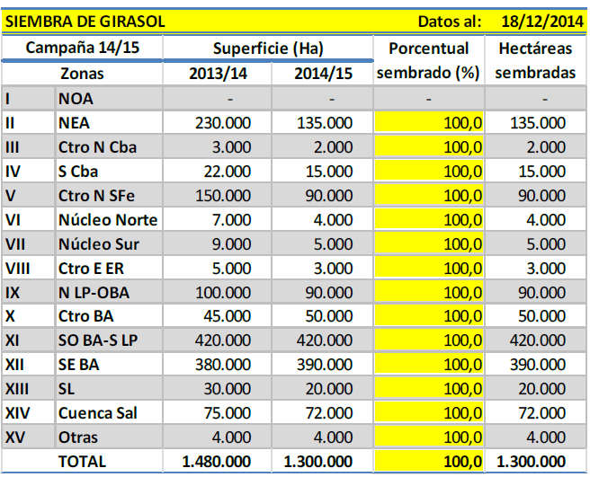 Los cuadros implantados en fechas tempranas en el Norte de La Pampa-Oeste de Buenos Aires comienzan a transitar las etapas reproductivas de floración. Hoy el panorama es positivo, dado que las condiciones que presentan los plantíos son muy buenas, apoyados por los pulsos hídricos registrados durante los meses de octubre, noviembre y lo que va de diciembre. Similares condiciones presenta la oleaginosa hacia el Centro de Buenos Aires, en las localidades de Bolívar, Daireaux, 25 de Mayo, Saladillo, Henderson y Azul, donde el grueso de los cuadros se encuentra próximo a ingresar en estado de botón floral y las reservas hídricas del perfil son óptimas.