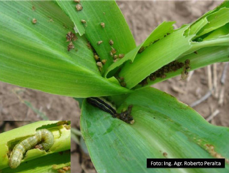 El monitoreo de esta plaga debe realizarse en todo el ciclo del cultivo. La razón es la capacidad de causar daño en cualquier estado de la planta, dependiendo de la fecha de siembra y región. Puede actuar como cortadora en la implantación, defoliadora en etapas vegetativas sin dañar cogollo, dañando cogollo y como desgranadora atacando la espiga en estados reproductivos. Este último daño lo puede hacer desde el inicio de llenado hasta la madurez del grano.