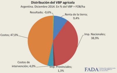 La razón principal de que la participación del Estado en la renta agrícola sea elevada durante la última década es la existencia de los derechos de exportación (o retenciones), que aplican una alícuota al precio bruto de los commodities agrícolas, mientras que el resto de los impuestos, que también afectan a otros sectores de la economía, se imponen sobre la ganancia neta o, si se imponen sobre el precio bruto, son trasladables, como el caso del IVA.