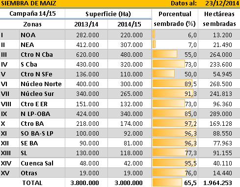 Durante los últimos siete días la siembra de maíz destino grano comercial logró avanzar 5,8 puntos porcentuales, llegando a cubrir el 65,5 % de un área proyectada para esta campaña en 3.000.000 hectáreas.