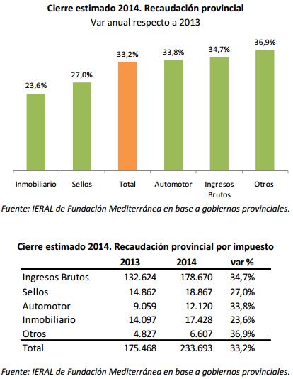 La recaudación provincial cerraría 2014 con un crecimiento nominal del orden del 33%