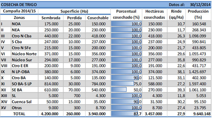 Durante los últimos siete días se registraron importantes progresos de cosecha sobre los núcleos trigueros ubicados en el sur bonaerense, y los rendimientos obtenidos comienzan a mostrar una tendencia en baja respecto a las expectativas previstas, acompañados en muchos casos por problemas en la calidad del grano recolectado.