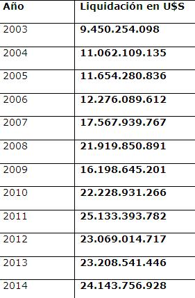 La liquidación de divisas de las empresas del sector en los últimos años fue: