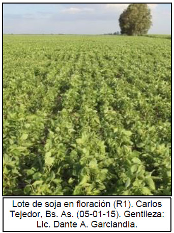 Sobre el Centro-Norte de Córdoba, los cuadros implantados en fechas tempranas transitan en su gran mayoría estadíos de floración (R1) o cuaje del grano (R2), en condiciones hídricas de adecuadas a óptimas luego de las lluvias relevadas durante los días previos. Hacia el sur de la misma provincia se relevaron lotes muy afectados por el déficit hídrico que soportaron durante gran parte de las etapas vegetativas del cultivo. Pese a ello, en esta última región una importante proporción de lotes aún mantienen una condición que varía de buena a muy buena, y transitan estadíos que van desde floración (R1) hasta estado grano lechoso (R3).