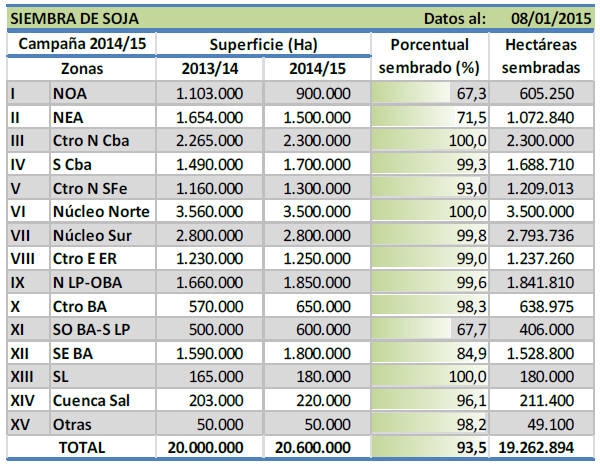 Por último, sólo restan trillar 160 mHa aproximadamente, ubicadas casi en su totalidad sobre el centro y sur de Buenos Aires. Dependiendo de las condiciones climáticas de los próximos días, no se descarta la posibilidad de dar por culminada la campaña de cara a nuestro próximo informe.