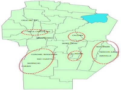 Suroeste provincial: el área afectada por la pedrea del pasado fin de semana comprende una amplia zona del Dpto. Río Cuarto. Las localidades donde se dio dicho evento climático son: Río Cuarto, Sampacho, Succo, Chaján; Carolina El Potosí, Holmberg, Charras y Las Higueras. En la ruta 158 a la altura de la localidad de Chucul se reportaron árboles caídos y abundante agua en la calzada. Las hectáreas agrícolas reales afectadas aún no son cuantificables. Las mismas serán ajustadas en próximos informes realizados por la Bolsa de Cereales de Córdoba.