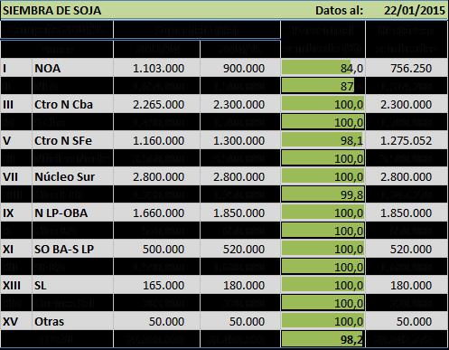 En el extremo norte del área agrícola nacional, las demoras que presentaban las labores de implantación eran debido a la falta de humedad superficial, la cual no permitía lograr un buen inicio del cultivo. En las últimas horas se registraron nuevos pulsos hídricos, que ayudan a retomar estas tareas y en consecuencia lograr finalizarlas en los próximos días. Lo contrario ocurre en el norte santafecino y en la provincia de Entre Ríos, en donde las continuas y abundantes lluvias causan excesos hídricos que no permiten terminar con las tareas de siembra.