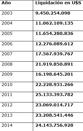 La liquidación de divisas de las empresas del sector en los últimos años fue: