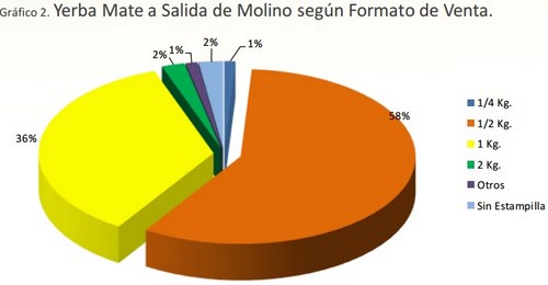 En cuanto a los formatos, los envases de medio kilo mantienen la preferencia de los consumidores. Los datos provenientes de las declaraciones juradas indican que durante el mes de Diciembre de 2014 los paquetes de medio kilo representan el 58% de las salidas de molinos al mercado interno. Con el 35% se ubicaron los paquetes de un kilo, con el 2% los envases de dos kilos, y con el 1% los de cuarto kilo. En el ítem otros formatos las salidas alcanzaron 1%, mientras que 2% correspondió al rubro sin estampillas.