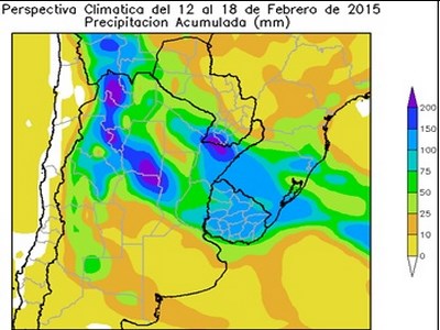 Perspectiva Agroclimática del 12 al 18 de Febrero de 2015: Golpe de calor seguido por tormentas sobre el norte del área agrícola y un lapso de buen tiempo