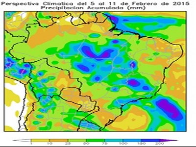 Perspectiva Agroclimática para Brasil del 5 al 11 de Febrero de 2015: Calor y tormentas en gran parte del área agrícola de Brasil