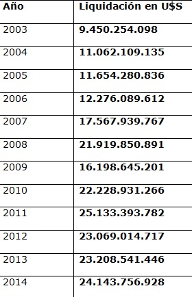 La liquidación de divisas de las empresas del sector en los últimos años fue: